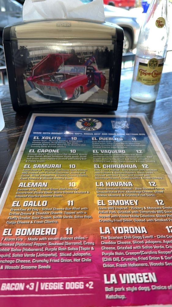 Barrio Dogg is a trendy and casual hot dog food stand located in San Diego, offering a variety of unique and flavorful hot dog options. The menu features choices like the La Virgen Ballpark Style with classic mayo, mustard, and ketchup, as well as the El Xolito TJ style loaded with a mouthwatering mix of toppings. Their specialty Barrio Fries come in a range of delicious flavors, from the Virgen fries to the Smokey fries. In addition to hot dogs and fries, Barrio Dogg also offers sides like Elotitos and Mamas Macaroni for those looking for something different. With a vibrant and eclectic menu, Barrio Dogg is a must-visit for hot dog enthusiasts and foodies alike. Enjoy their tasty offerings while taking advantage of their outdoor seating and friendly service.
