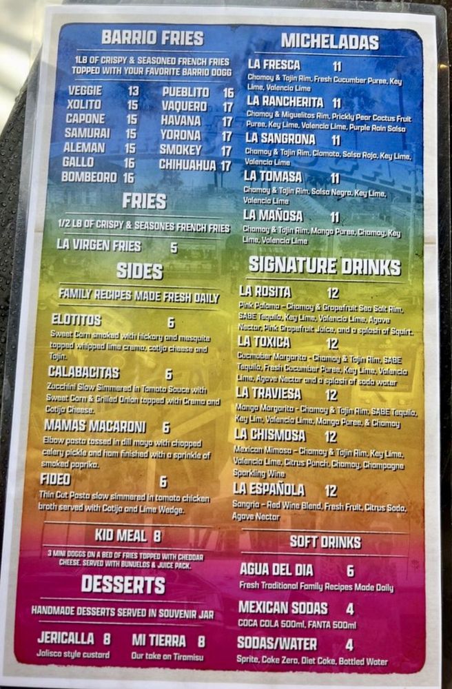 Barrio Dogg Menu (2025 Update)
